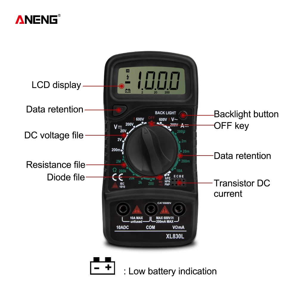 Home Automotive ANENG XL830L Digital Multimeter Esr Meter Testers Automotive Electrical Dmm Transistor Peak Tester Meter Capacitance Meter