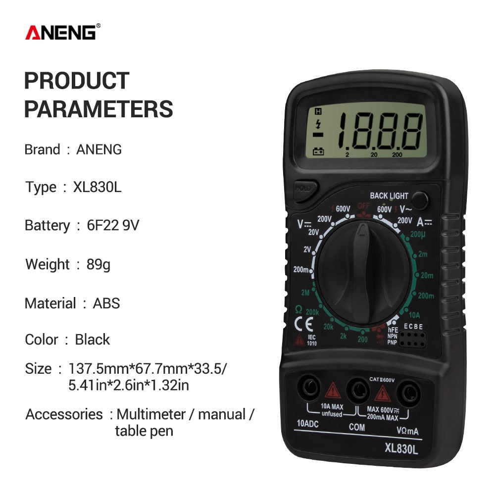 ANENG XL830L Digital Multimeter Esr Meter Testers Automotive Electrical Dmm Transistor Peak Tester Meter Capacitance Meter
