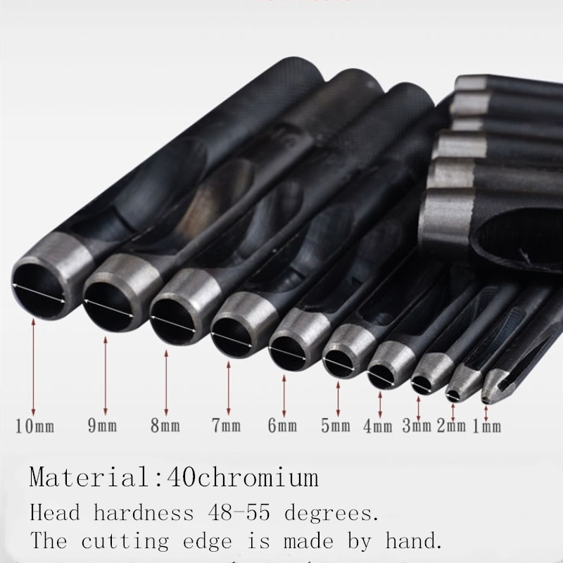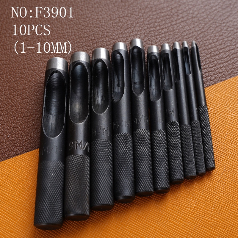 Round Hollow Punch Set 10Pcs Leather Craft Punch Tool Hollow Hole Punch Cutter Tool for Watch Bands Belts Canvas Paper (1-10MM)